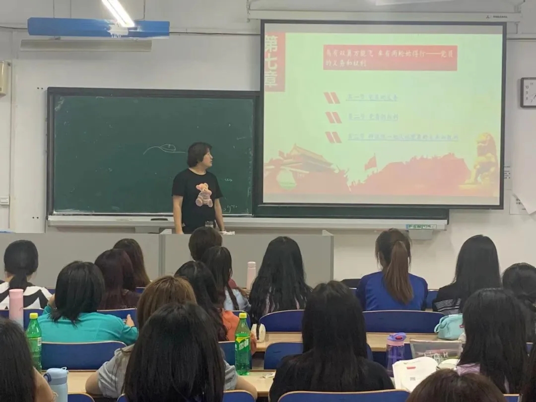 魏静老师对财会系学生入党积极分子进行党课培训。