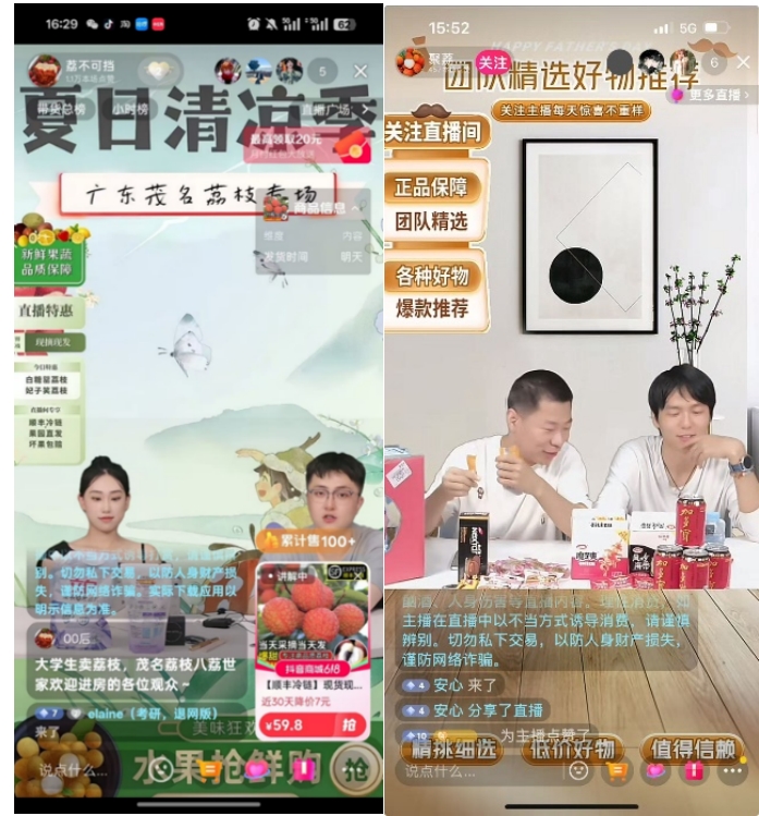 荔不可挡团队以“夏日清凉季”为主题,打造专场直播。聚荔团队则以“团队精选好物推荐”为主题打造专场直播。从产品选择到流程设计均体现专业考量:精选白糖罂、妃子笑等优质荔枝品种,突出 “现摘现发、顺丰冷链、果园直发、坏果包赔” 的品质保障;结合 618 电商节热点,推出直播间专享优惠与降价福利,吸引观众下单。