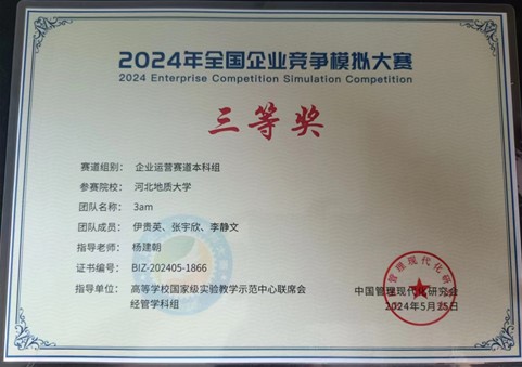 学生在2024年全国企业竞争模拟大赛中获得佳绩。