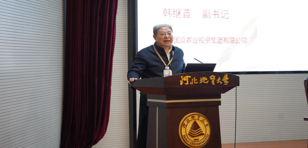 原河北省国富农业投资集团有限公司副书记韩继普作为导师代表发表致辞。会上他分享了题为“分享使人快乐”的报告。他表示,要利用好学院提供的平台,与学院紧密合作,探索出地大特色的育人+就业新模式。