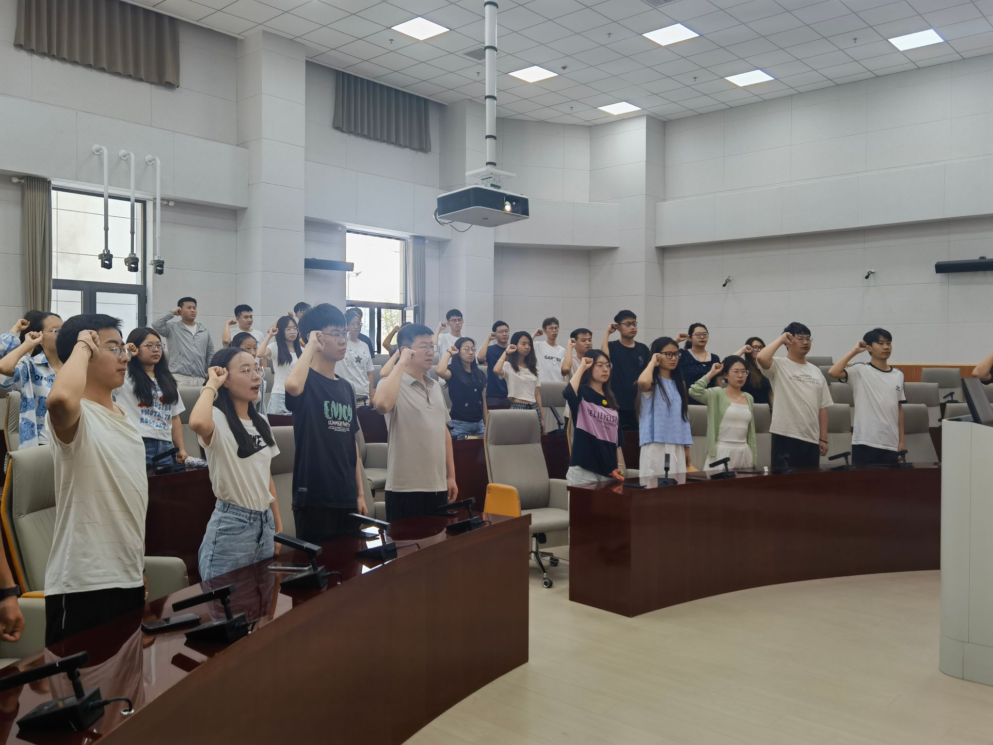 在毕业生党员王靖萱同志的领誓下,全体毕业生党员面向党旗重温入党誓词,铿锵誓言彰显了青年一代“听党话、跟党走”的坚定信念。全体毕业生党员将以此为新的起点,把誓言内化于心,外化于行,以更加饱满的热情投身到工作中去。