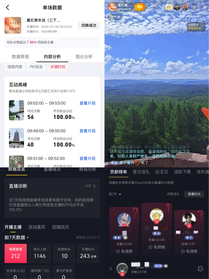 实践队充分发挥新媒体优势,成为塞罕坝故事的“青春传声筒”。调研期间,团队制作并发布高质量调研Vlog多部、主题纪录片1部、科普图文15篇,在抖音、小红书、B站等平台累计获得播放/阅读量突破万次,互动点赞超千次。话题引发网络热议,成功吸引数万名青年网友关注塞罕坝生态成就,显著提升了生态文明理念在年轻群体中的传播广度与深度。