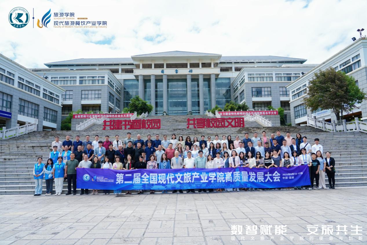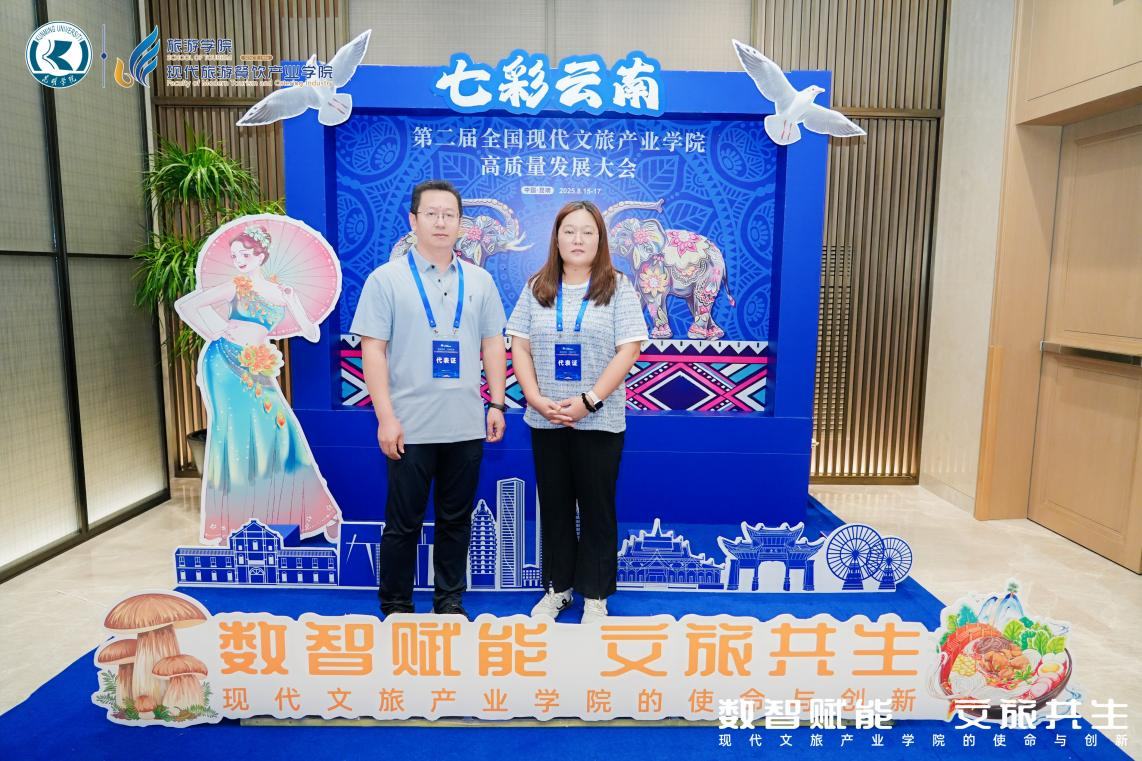 旅游管理教研室主任杨丽花和旅游管理专业教师张启参加了此次大会。本次大会由教育部旅游管理专业国家虚拟教研室指导,全国现代文旅产业学院联盟主办,昆明学院旅游学院(现代旅游餐饮产业学院)承办,云南省产教融合发展联盟支持。大会以“数智赋能·文旅共生:现代文旅产业学院的使命与创新”为主题,探索文旅产业学院的发展新路径。