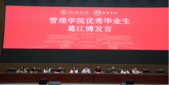 优秀校友葛江博学长结合学生生涯与职场的经历从学习方面告诉大家自主学习、时间管理的重要性,在生活方面则需要注重心理健康与人际沟通;新生代表闫孟珏同学以大学四年,到底该怎么过发问、从胸怀“红耀双地”的红色初心,到践行“管行致远”的蓝色担当,强调把大学“管理”成自己喜欢的样子,把青春“运营”成未来骄傲的回忆,不忘来时的梦想,不负师长的期望,更不负滚烫的青春。