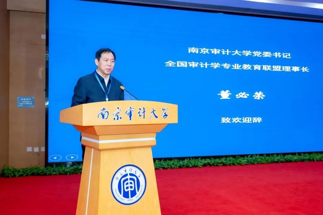 11月15日上午,全国审计学专业教育联盟第一届第三次会议开幕式在南京审计大学举行,南京审计大学党委书记董必荣致欢迎辞。他指出,当前文科迎来历史最佳机遇期,构建中国自主知识体系是响应党中央战略部署的关键任务。他介绍了南京审计大学在建构中国审计学自主知识体系、推进原创性教材建设和讲好中国审计故事方面的探索与实践。他倡议联盟成员在体系构建、师资赋能和产教融合三方面协同发力,共建共享,共同扛起为党育人、为国育才的时代重任,推动中国审计教育高质量发展。南京审计大学党委常委、副校长陈冬华主持会议。