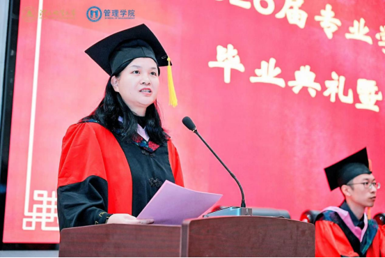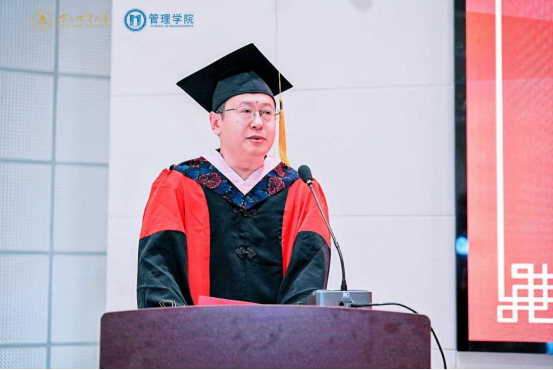 毕业生学成毕业,细数学校学科建设、科研创新的亮眼成就,寄语学子秉持钻研韧劲、担当精神与开放视野,在新征程书写地大人的精彩篇章。然后,白翠玲院长发表了热情洋溢的讲话,肯定大家践行院训、将管理专业所学融入实践并屡获竞赛佳绩,并寄望毕业生们常念母校,在社会各个领域为国家和社会贡献力量。