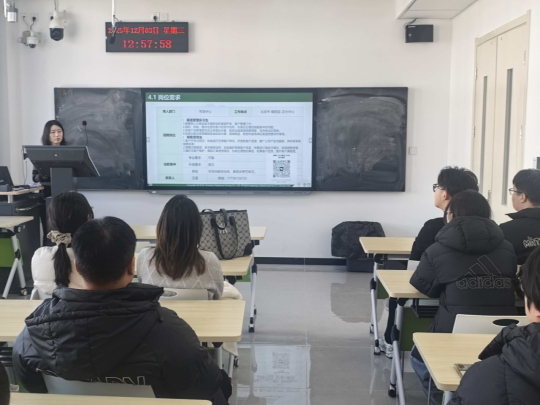 专业高度契合的方向,并详细解读了岗位任职要求、工作内容及培养路径。针对同学们普遍关心的简历投递、笔试面试流程等问题,负责人逐一进行解答,并结合自身职业经历分享求职技巧,鼓励同学们提前做好职业规划,积极投递简历。